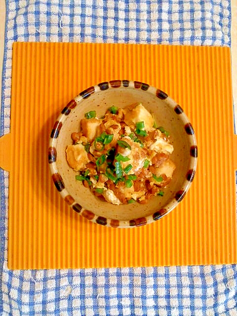 厚揚げのみそマヨ納豆 天かす乗せ レシピ 作り方 By もっずーく 楽天レシピ